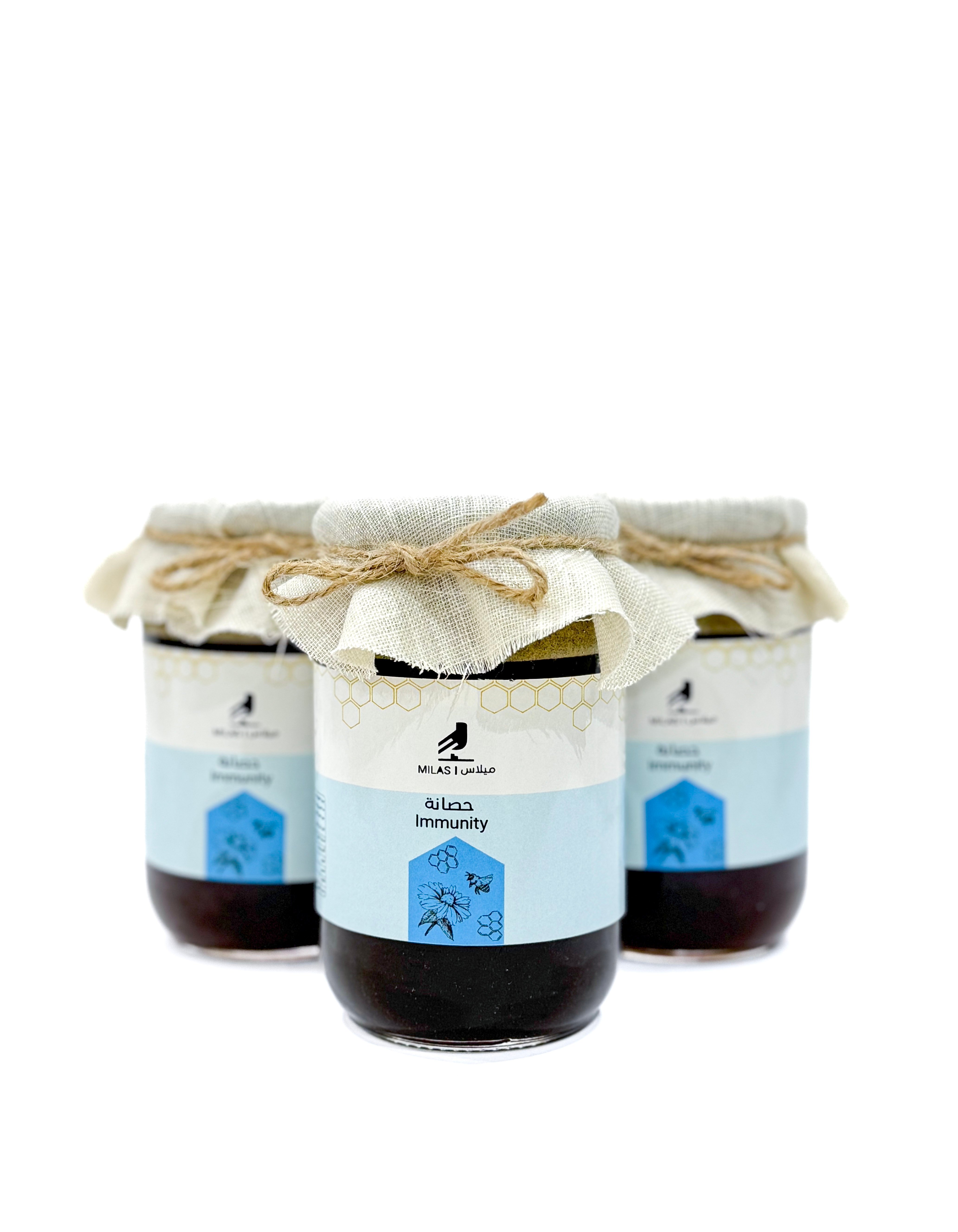 بوكس حصانة المميز الذي يضم 3 علب من خلطة العسل الطبيعية المصممة خصيصًا لدعم وتقوية جهاز المناعة.